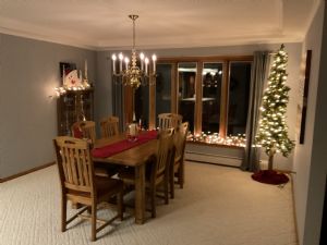 Last night we had our oldest daughter over along with a couple that are her age. The guy is a duck dude. We sat in the living room enjoying the tree and visiting. We served an appetizer selection, that included Conard pate’ and I made “eider duck” cocktails. I have to admit-to having to google what an eider duck is. They ain’t in these parts.
