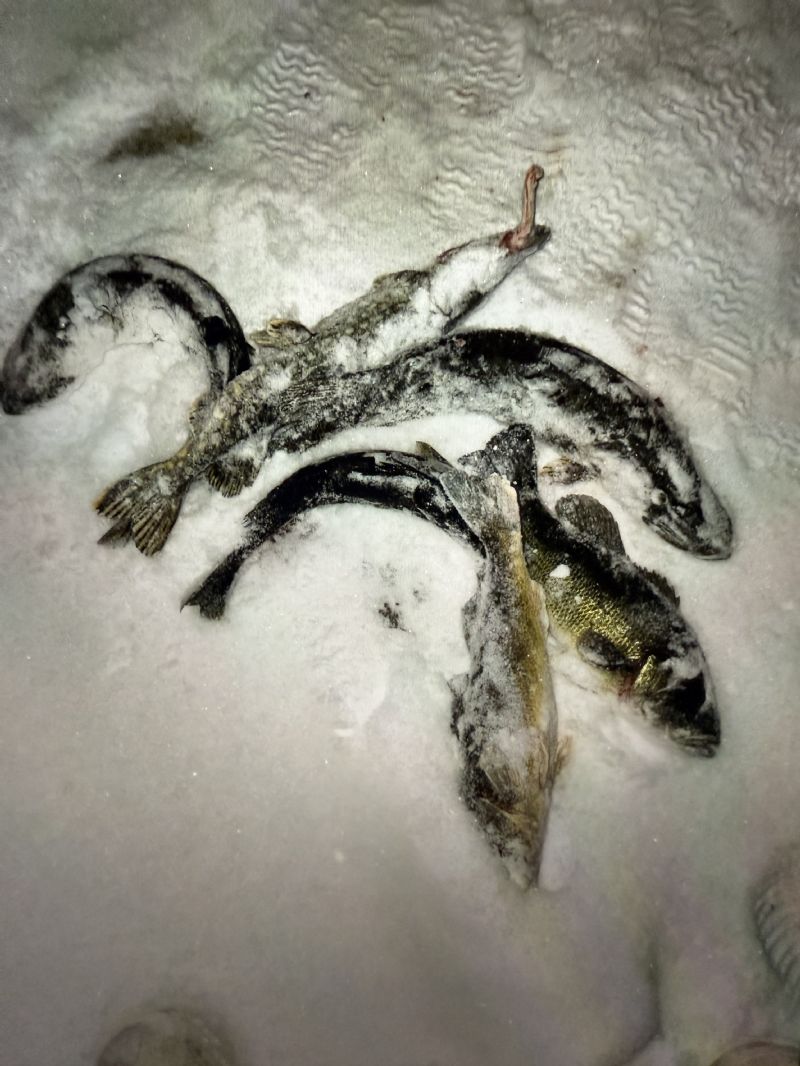 Well, the fishing trip to Land O Lakes , Wisconsin started out great. Got set up lat in the afternoon for the night bite and caught 2 nice Northerns, a nice bass and a walleye, and a few rock bass. Fished till dark until my buddies showed up. Friday as cold as it was we also did well on Northerns and caught a few walleyes too. Then the deep freeze kicked in and we woke up to -23 degrees.