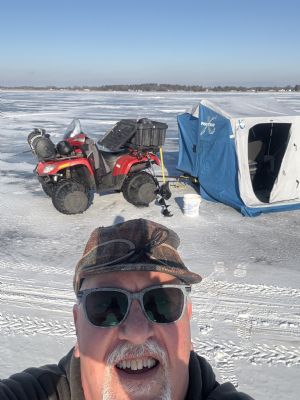 The shore and land have 20 + inches of snow. Luckily the big snow happened before the lake froze over. There will be 6 or 8 of us and we’re allowed 3 lines per man. Will be doing mostly Tip up fishing with large shiners for northern and large suckers for walleye. Gonna be a high of ZERO !!! We’ll have 2 large hub shacks and my flip over. Taking my four wheeler to haul all our gear and make runs to the cabin, which by the way is a beautiful lake home, to get supplies if needed……………aka……Beer!!! The best part is……….Great group of friends that truly look forward to seeing each other, fish, and yuc it up!!!